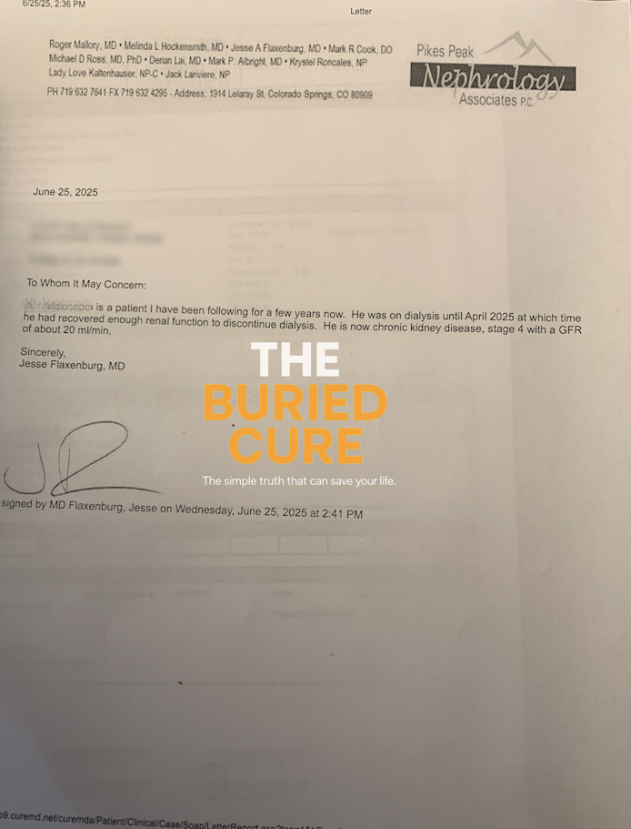 He feels they “minimize it”. He is the only patient at his clinic who reversed kidney failure, but he believes that instead of celebrating or studying how it happened, they ignore it because “Healing doesn’t bring in money—managing chronic illness does”.